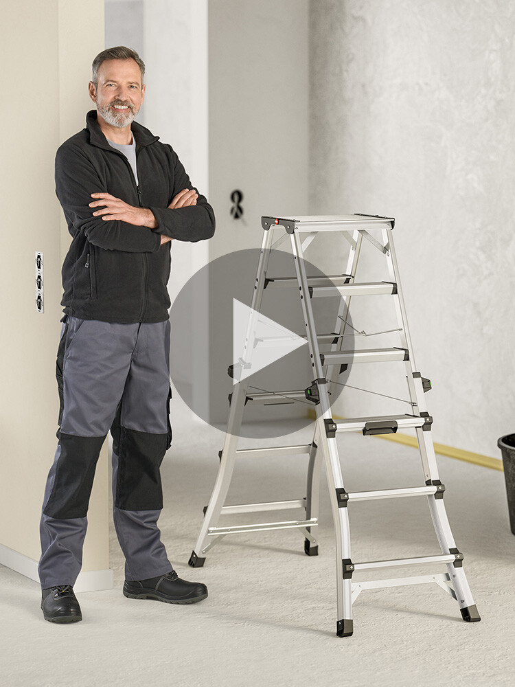 Innovative Doppelleiter für vielfältige Anforderungen: Stufenweise Höhenverstellung von 2x4 bis 2x6 Stufen